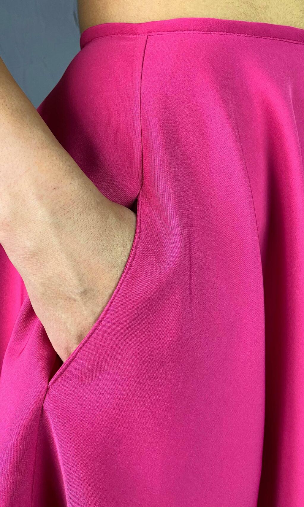 Saia godê com bolso, confeccionada em tecido gabardine, fechamento traseiro por meio de zíper e cós no viés. Não possui forro. Perfeita para compor looks com corsets e croppeds!